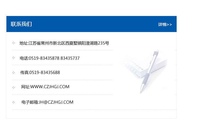 地址:常州市新北區友邦商務大廈1幢16、17層  電話:0519-85101652  傳真:0519-85112595  郵編:213022  網址:www_cz-jiayue_cn.hfjcmc.com  郵箱:xiajifengaa@163.com